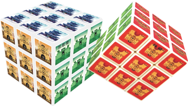 六楼文化魔方将古城榆林六楼巧妙地印在魔方的六个面上。它不仅可以使孩子在动手、